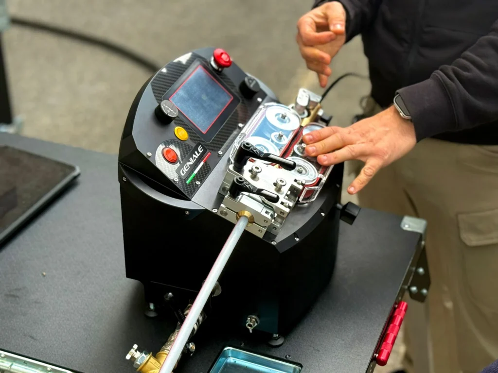 Una macchina completamente elettrica per micro e mini cavi, dotata di un sistema di marce unico: 400 N di forza di spinta per cavi di grandi dimensioni e 100 N per cavi più piccoli, con un sistema avanzato di protezione del cavo.