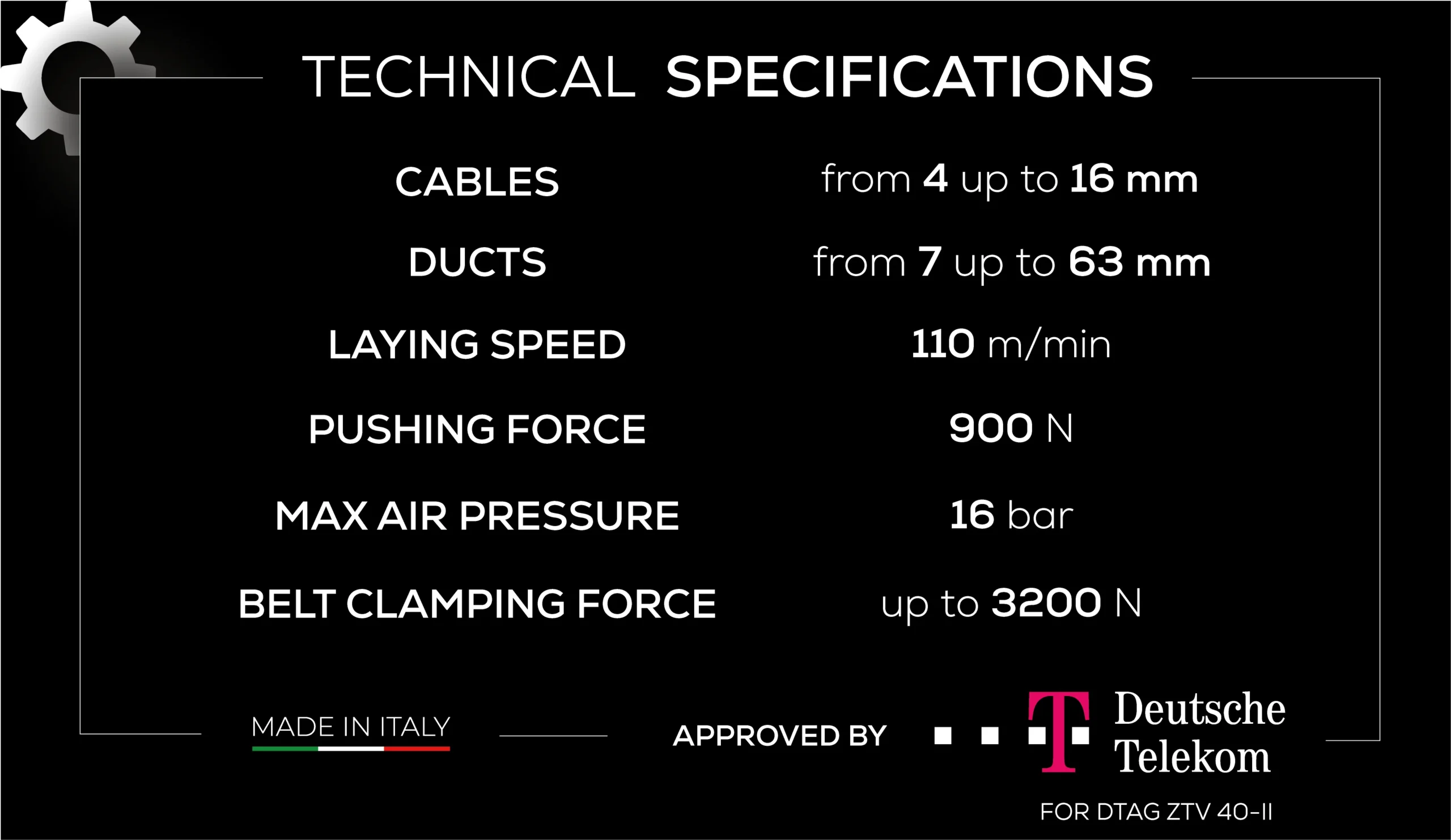 The exceptional thrust enables the machine to overcome obstacles and reach longer installation distances, increasing installation efficiency and daily productivity.