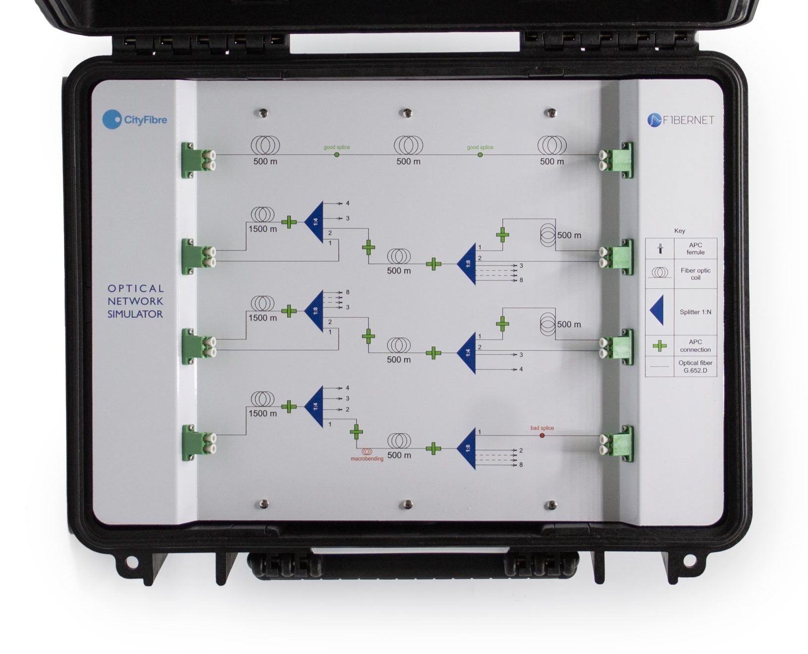 I simulatori di rete Fibernet sono progettati per offrire un ambiente realistico e completamente controllato per test e formazione sulle infrastrutture in fibra ottica. Progettati per replicare fedelmente sia reti P2P che PON, consentono ai tecnici di verificare le prestazioni OTDR, analizzare il comportamento del segnale e simulare condizioni reali di rete fino a 20.000 metri.